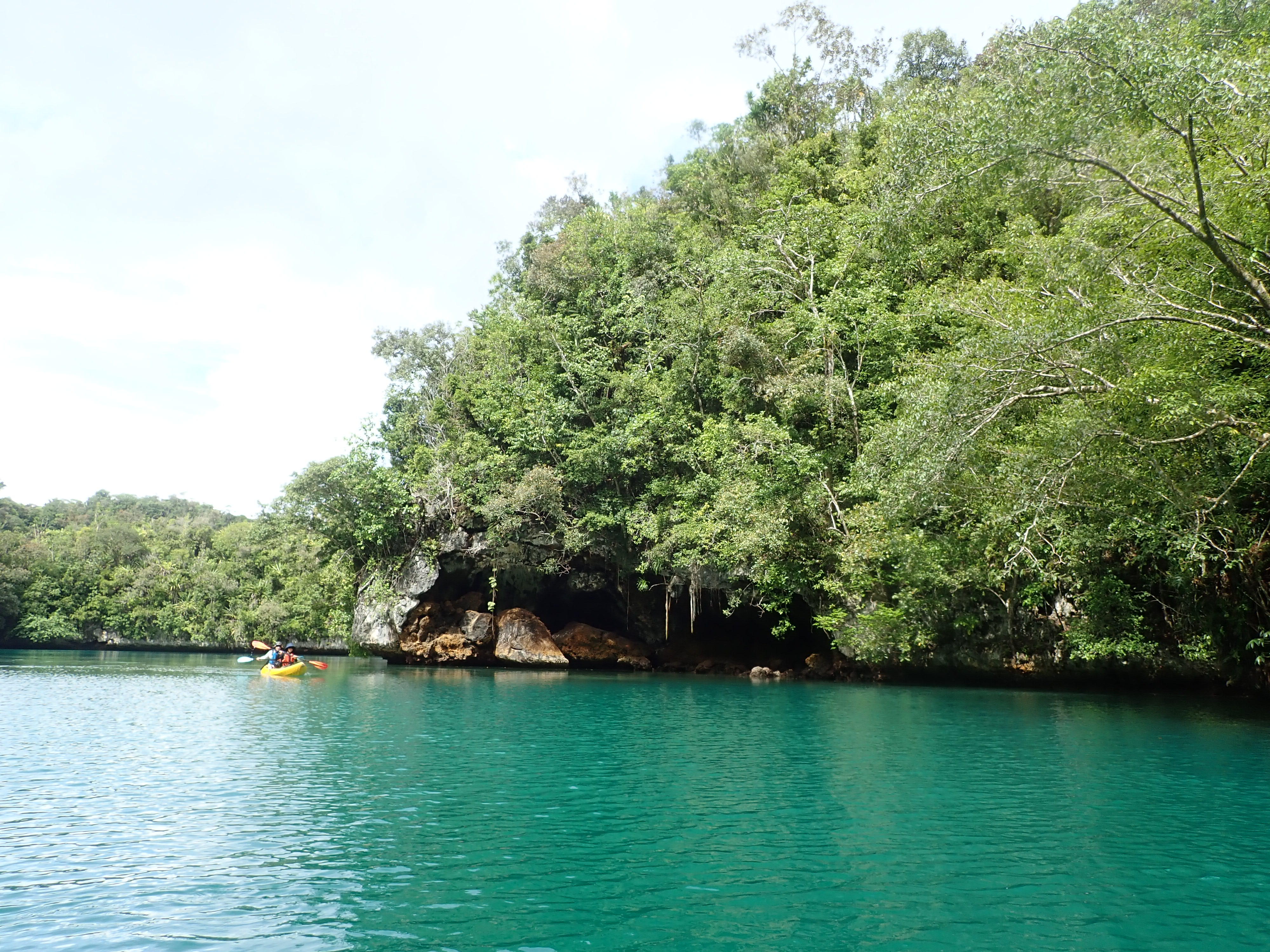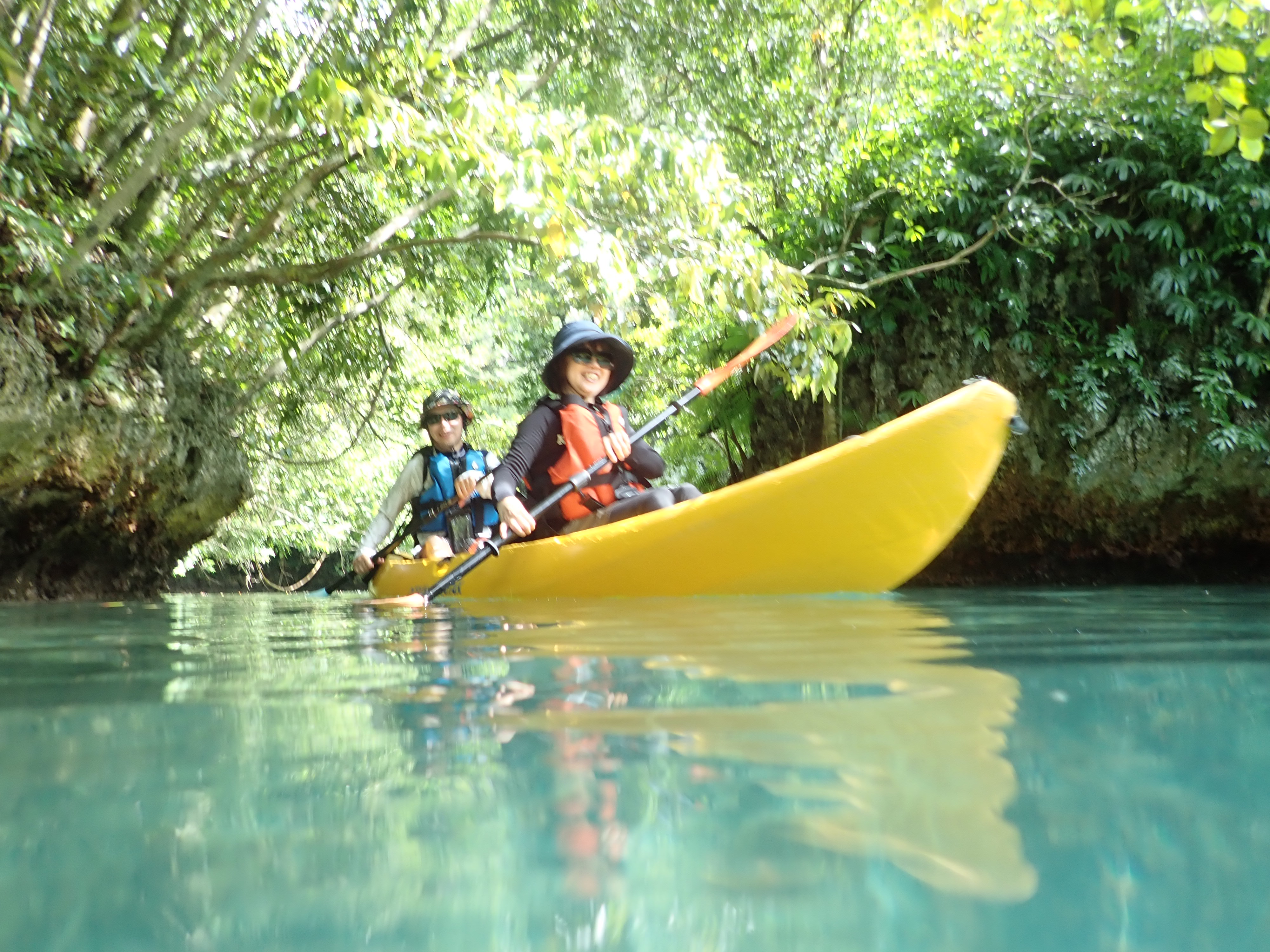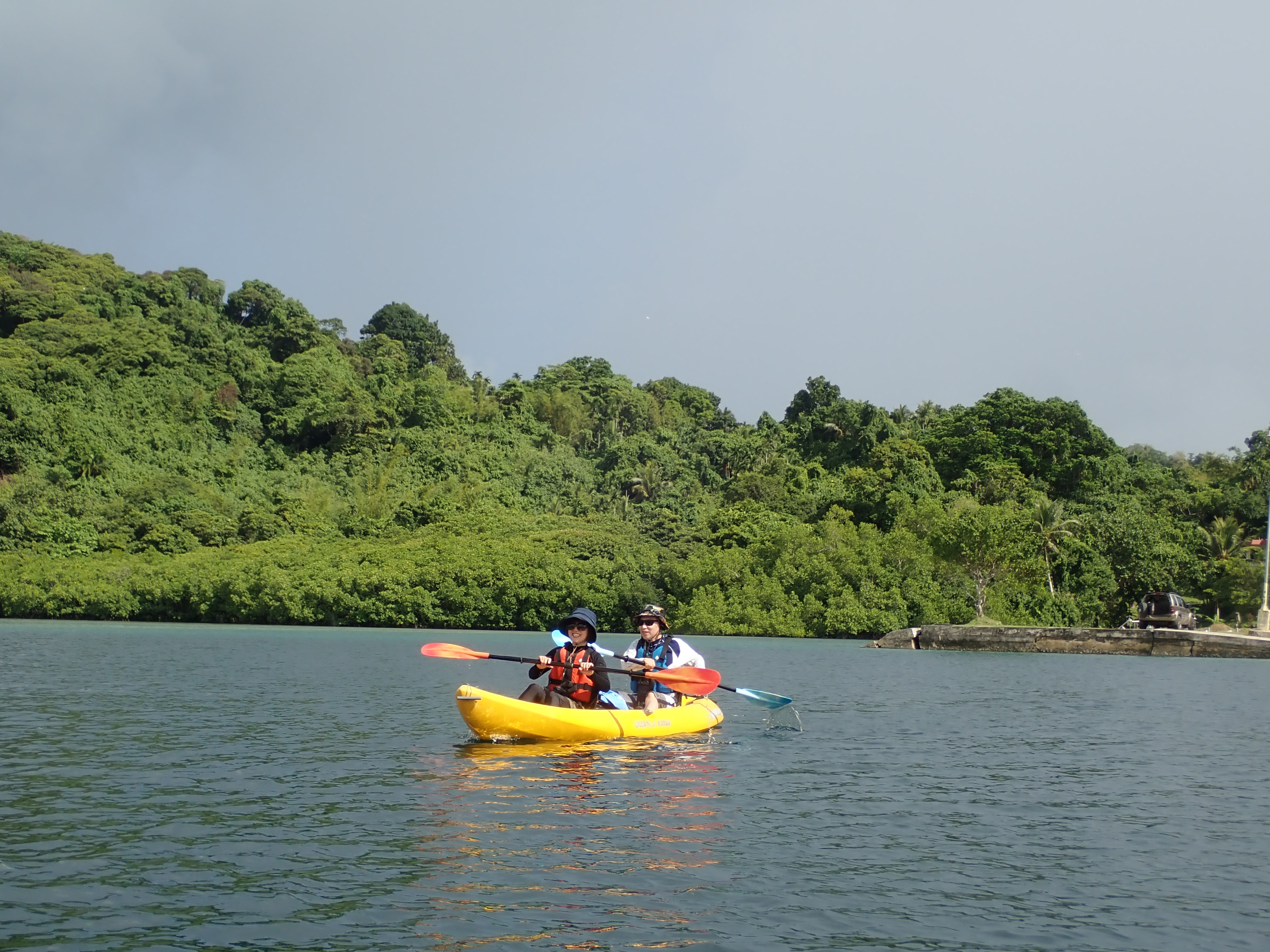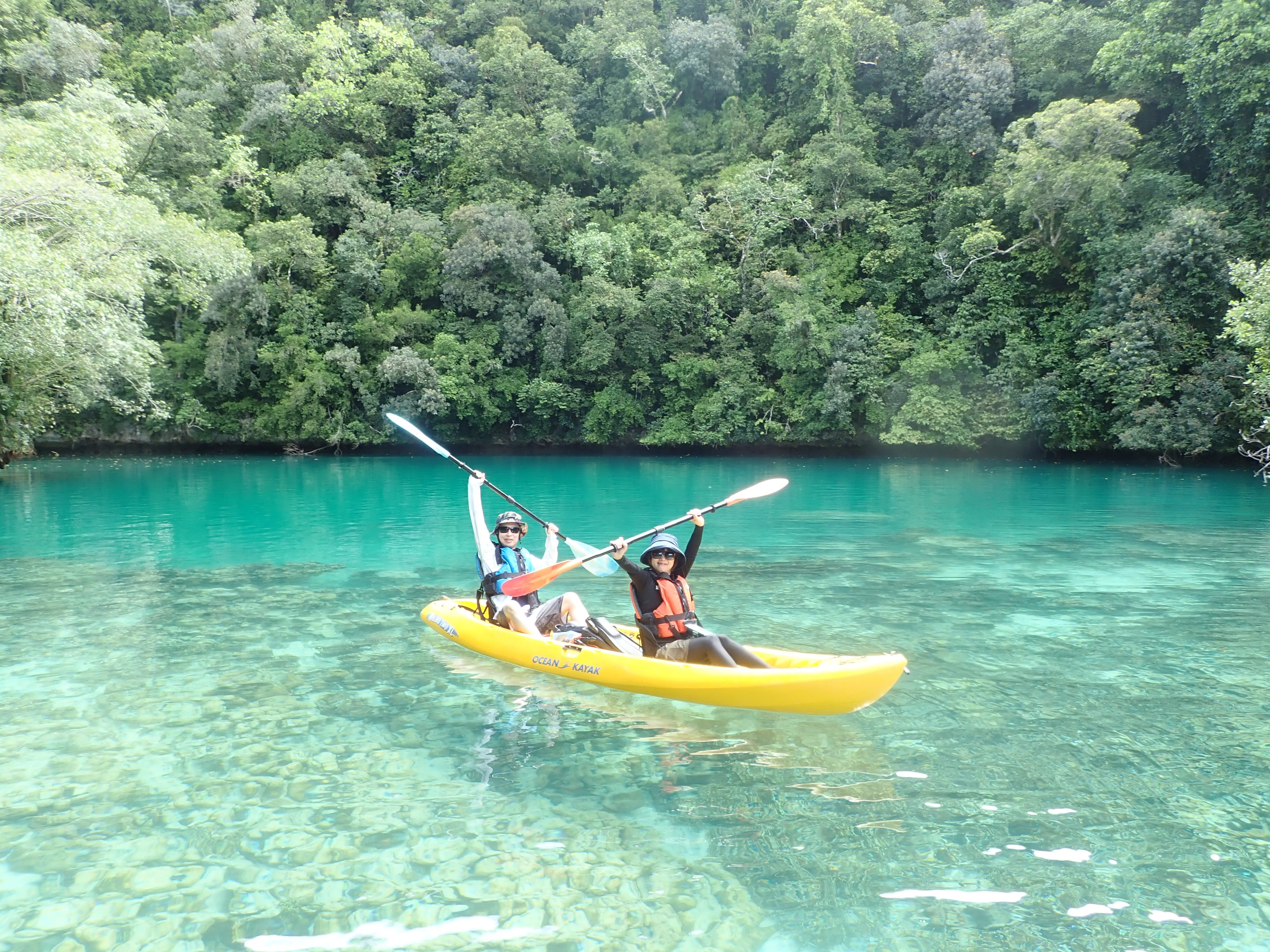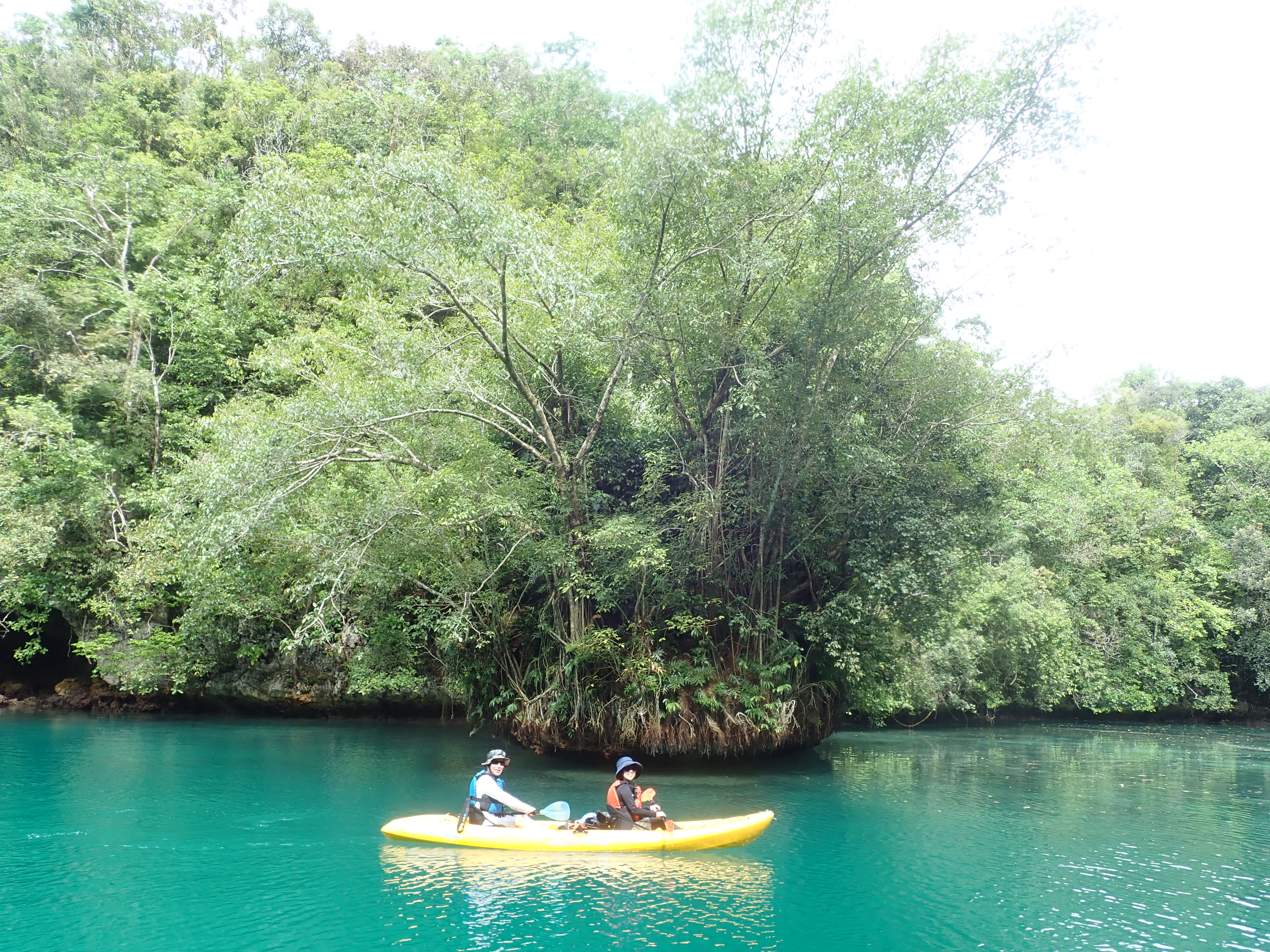先ずは穏やかな入江をカヤッキング。波風の影響の少ないパラオ松島内はカヤックを初めての方でも安心してご参加頂けます。