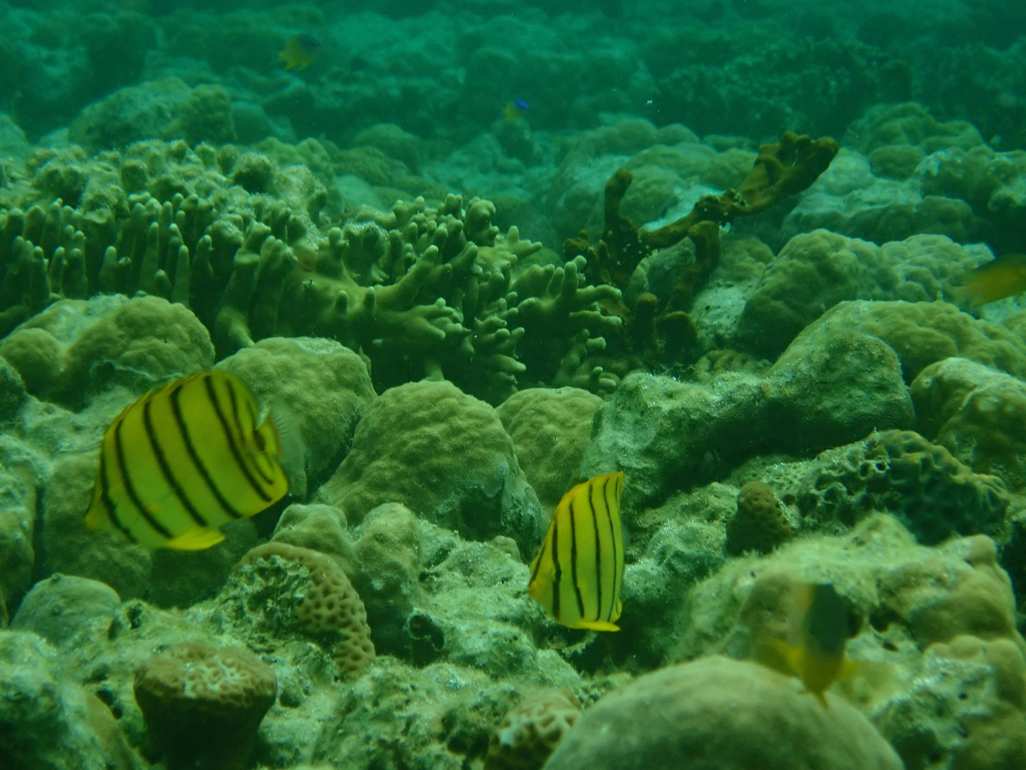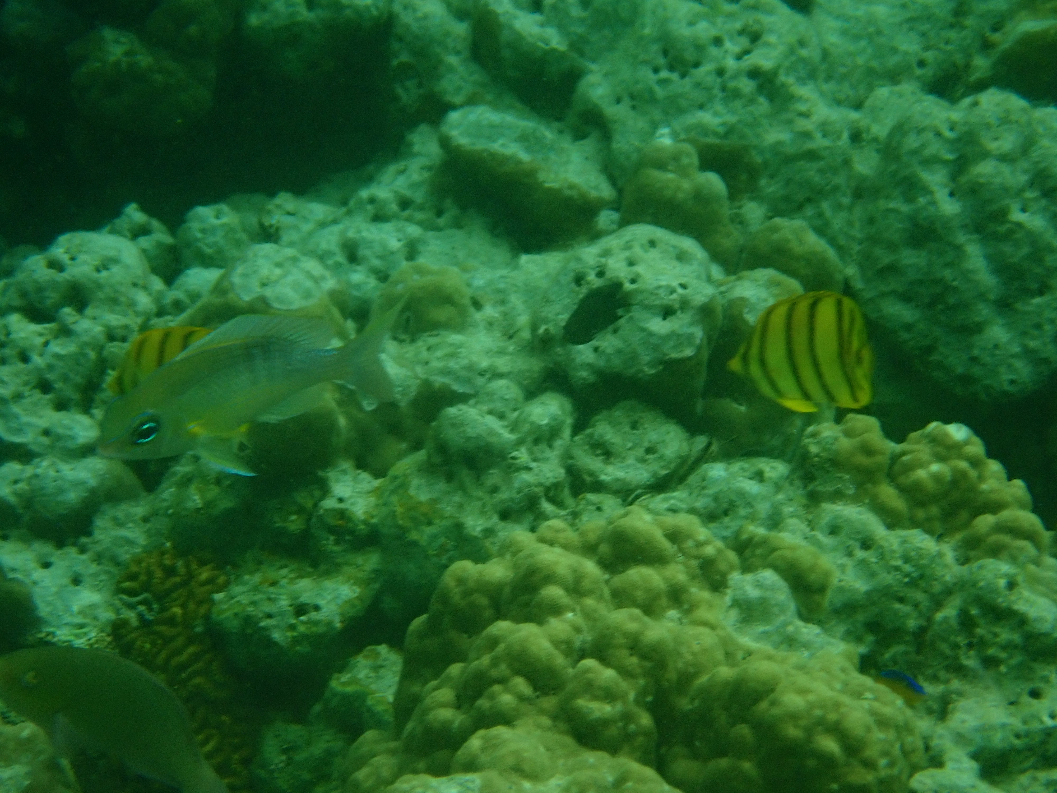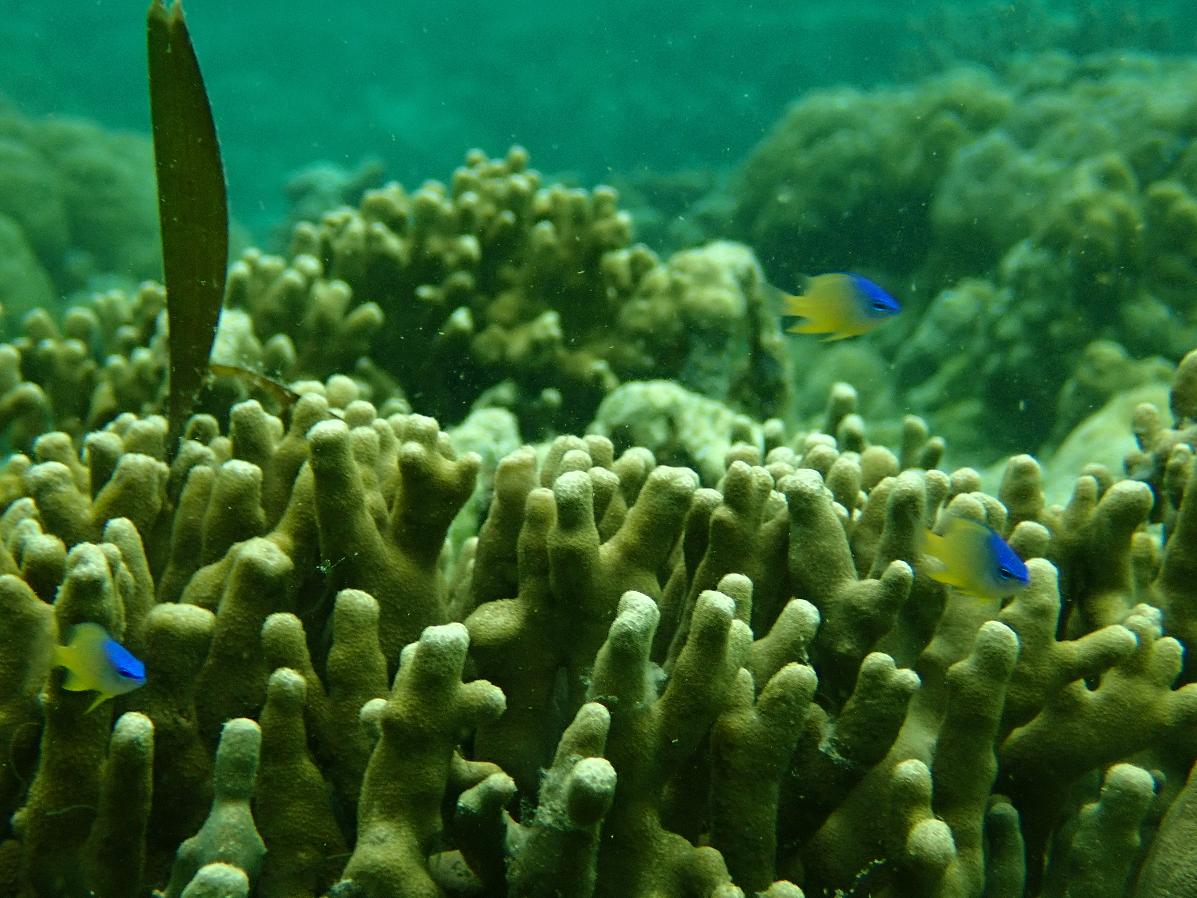 外の海ほどの派手さはありませんが、独特の珊瑚の種類や小さな魚達の水中世界を観察できます。流れも無く穏やかなのでゆっくりとスノーケルを楽しみました。