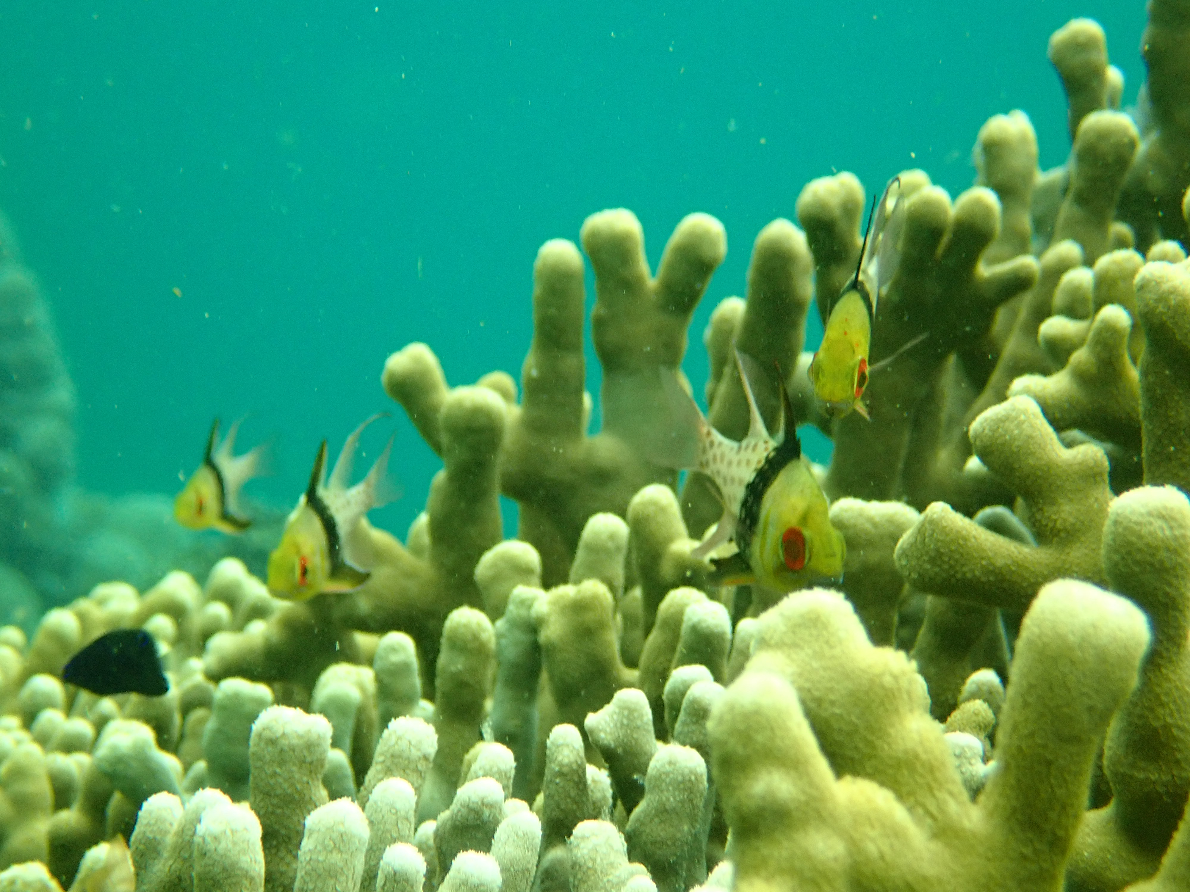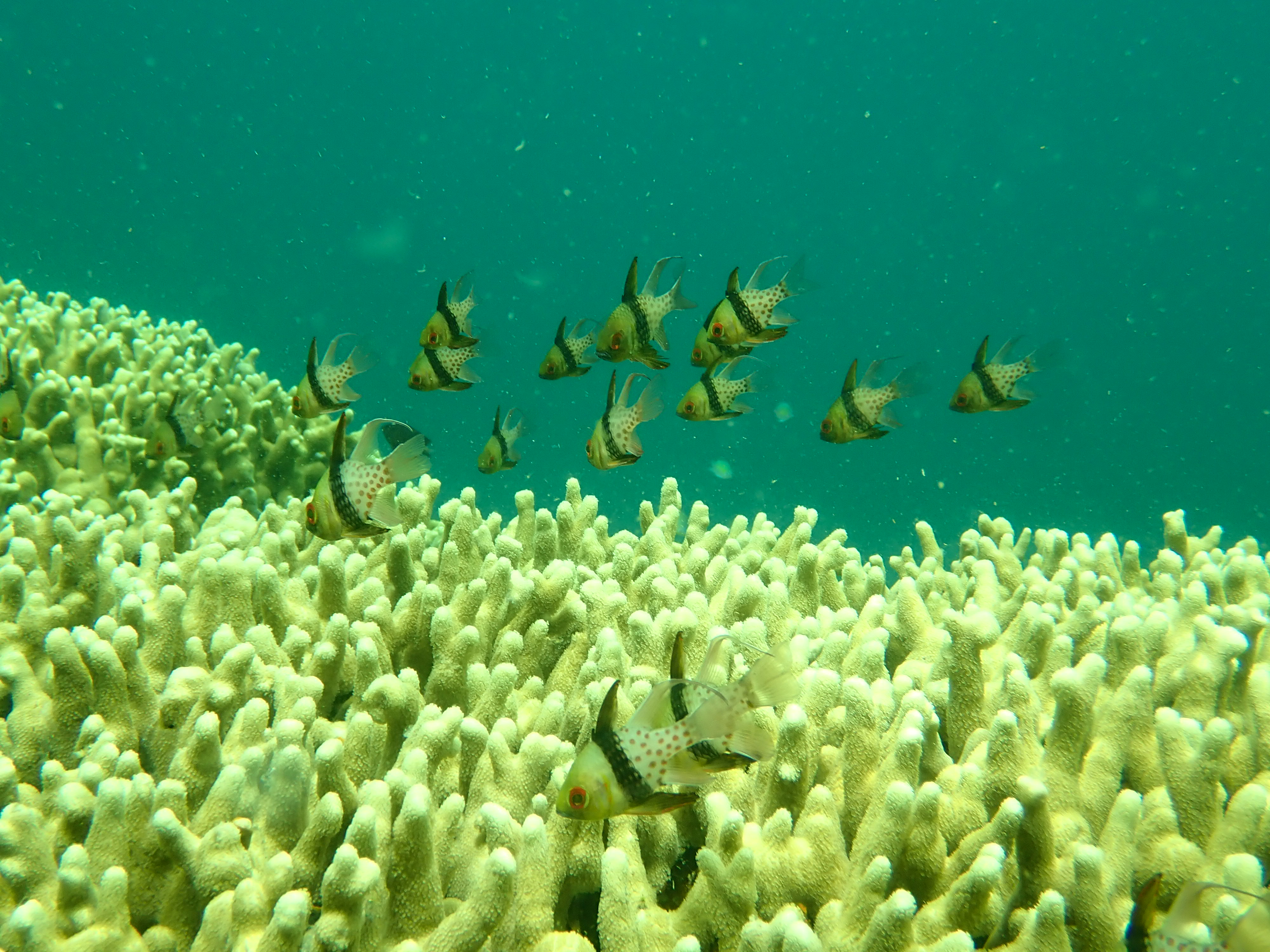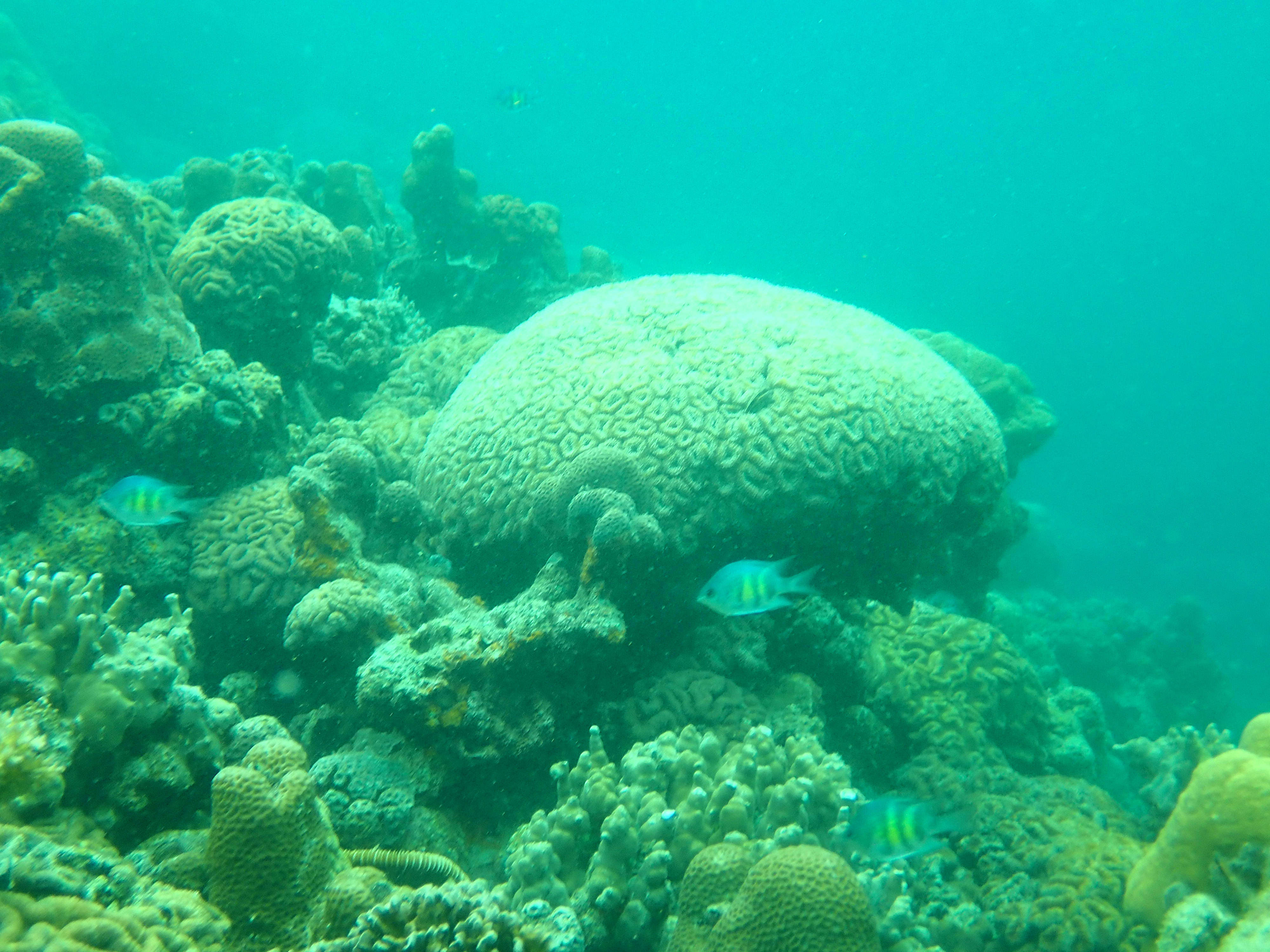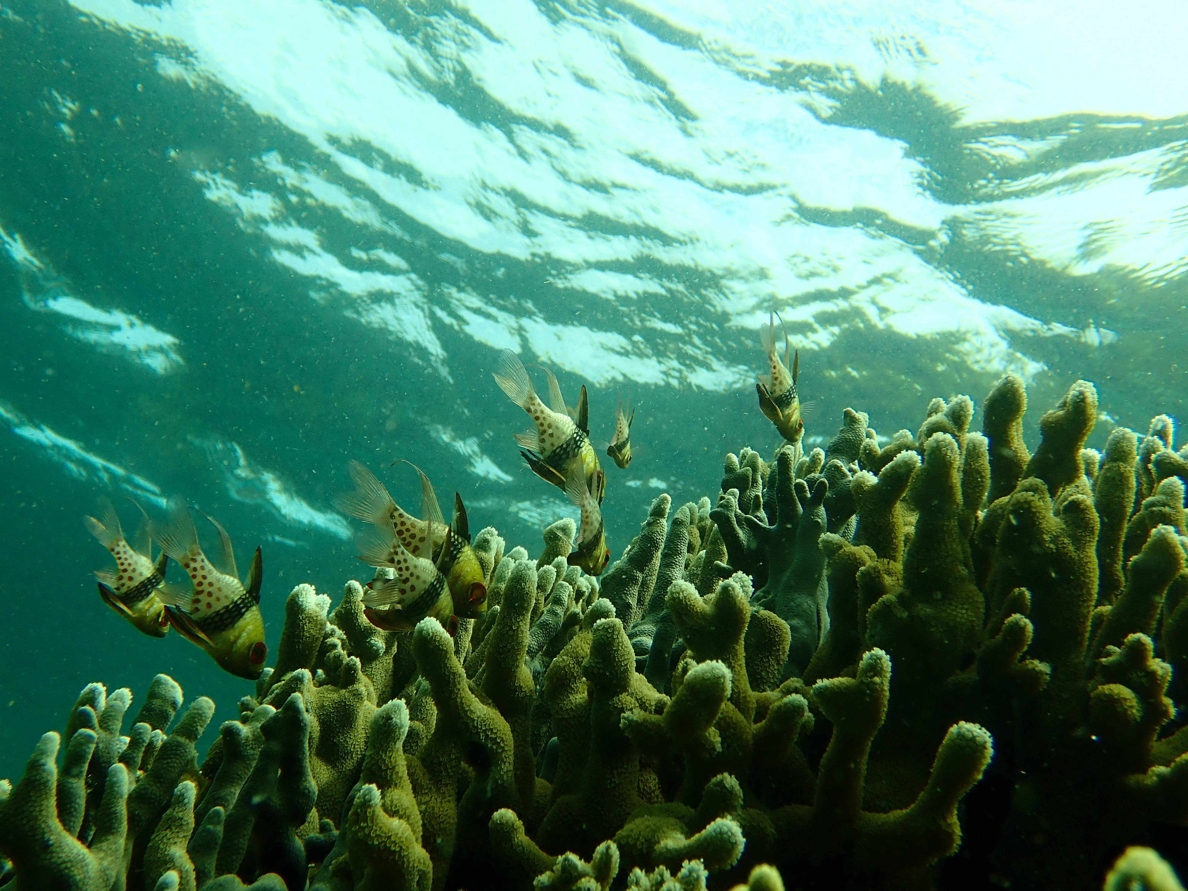 外の海ほどの派手さはありませんが、独特の珊瑚の種類や小さな魚達の水中世界を観察できます。流れも無く穏やかなのでゆっくりとスノーケルを楽しみました。