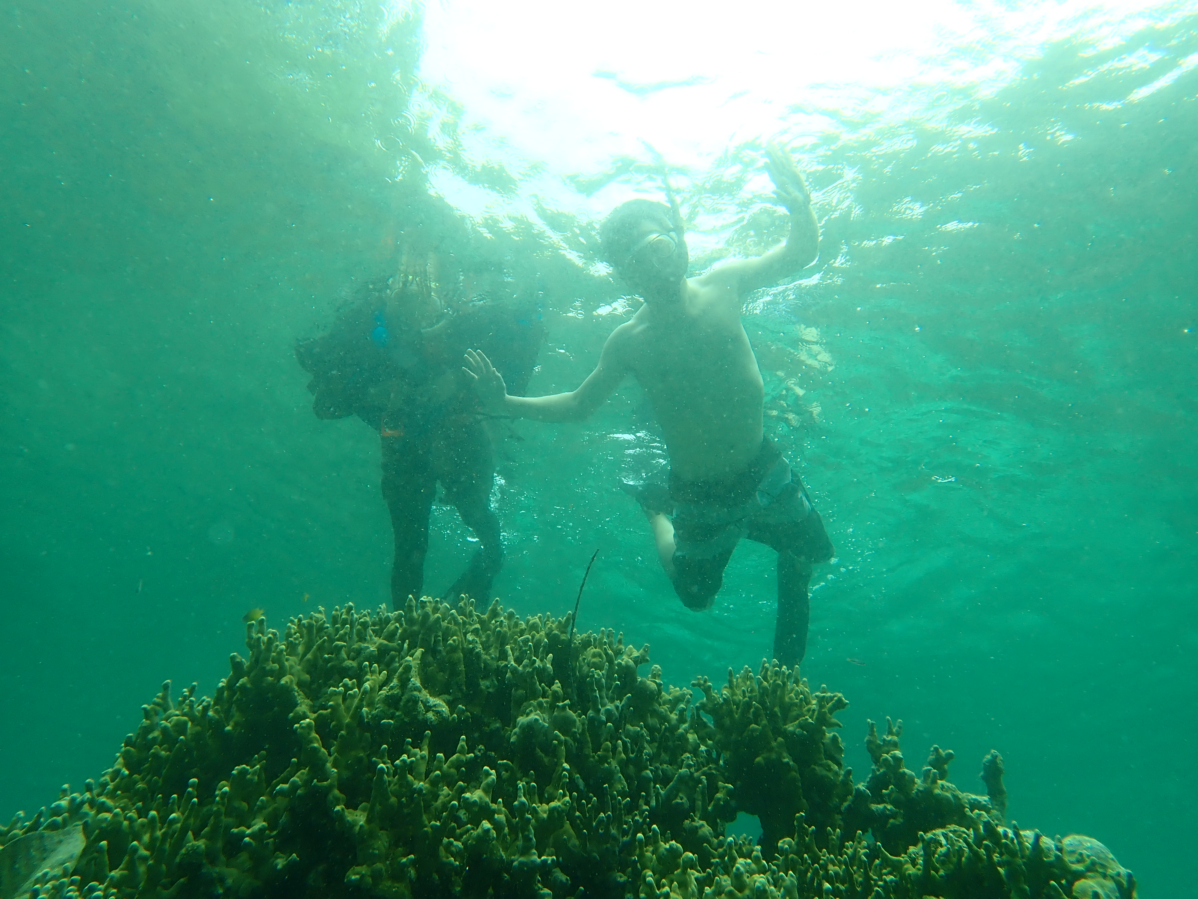 帰り道ももう一回スノーケル。場所によって住む魚の種類も異なり、見ていて飽きません。
