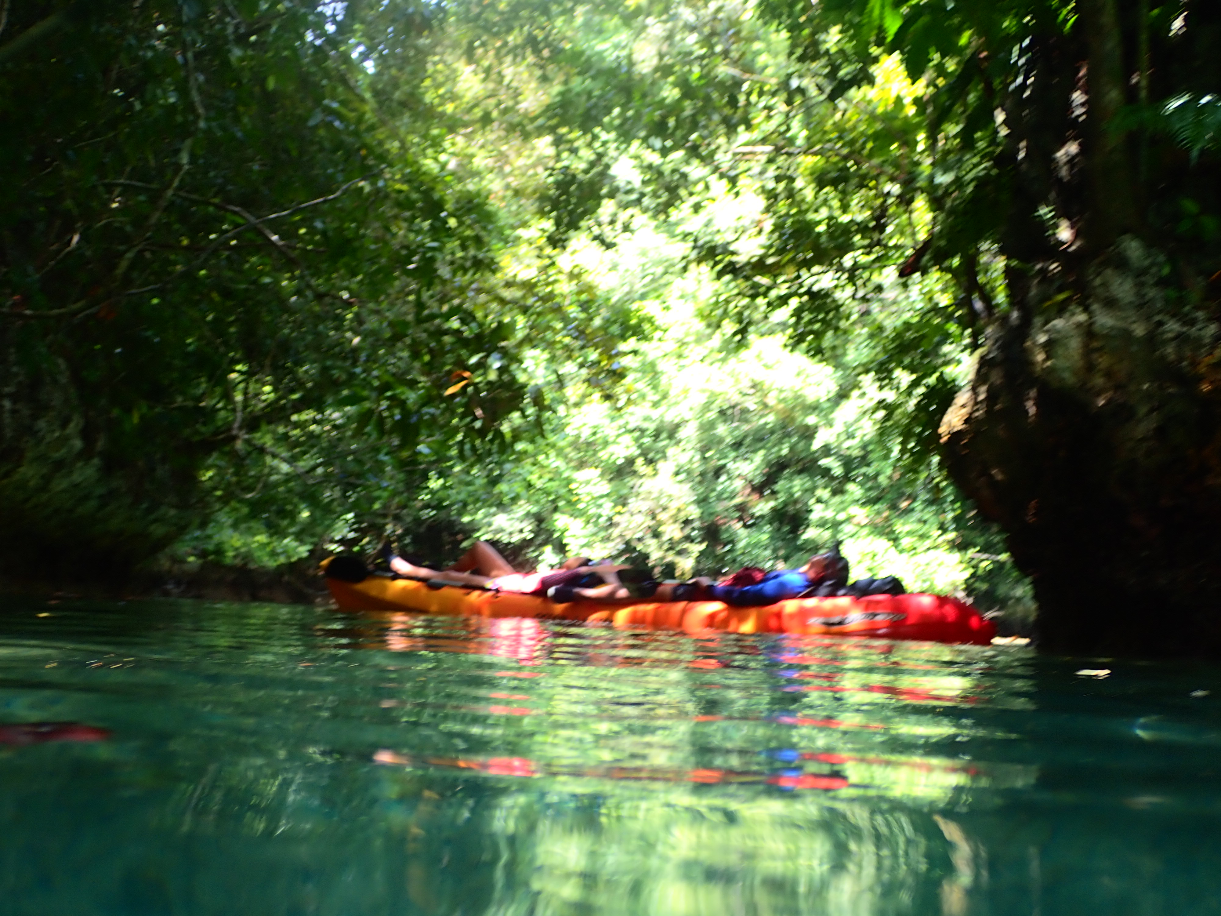 Entered the rock island bay and rested in the shade of the jungle. A nice place where you can only hear the sounds of nature.