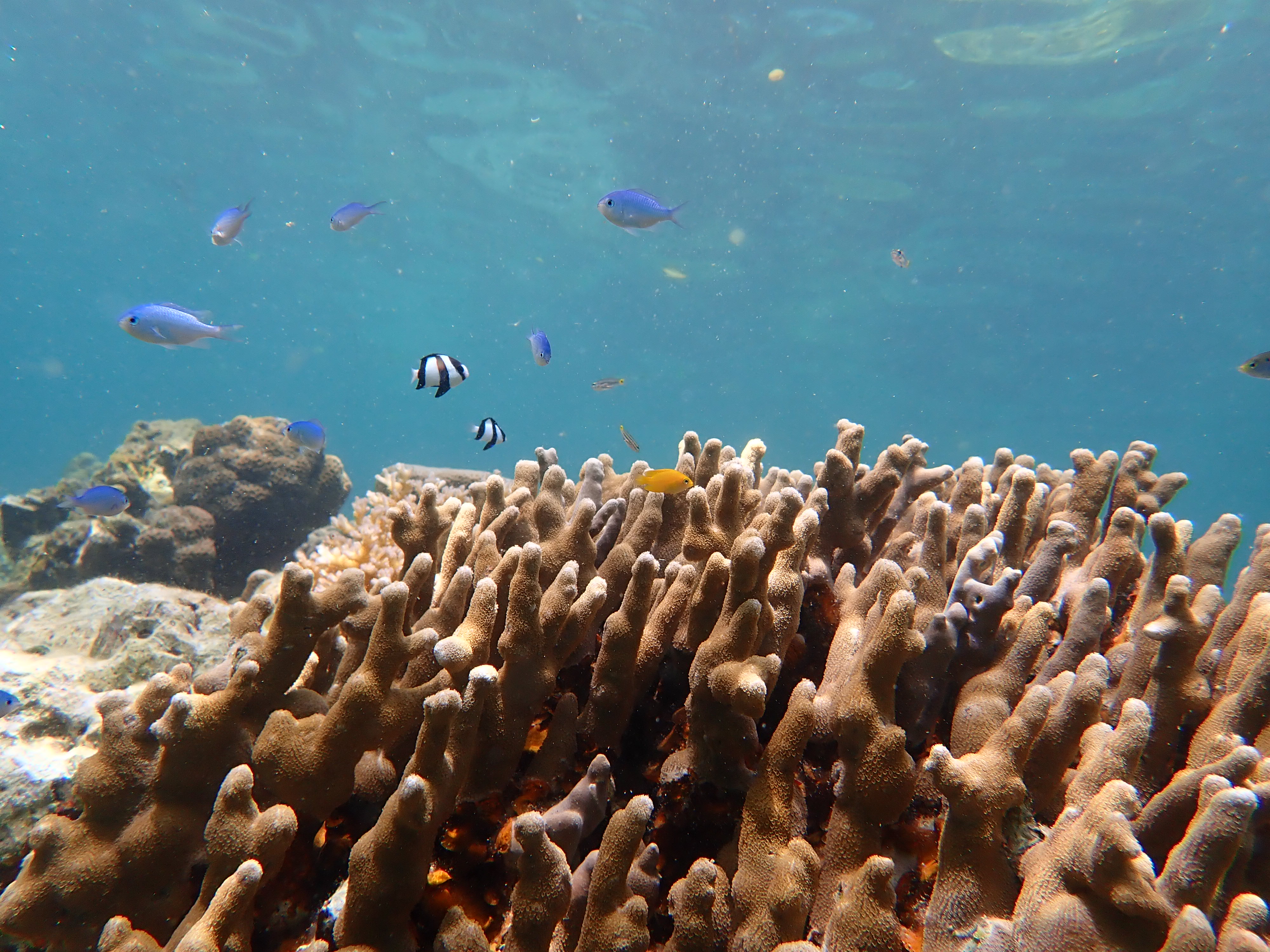Snorkeled again in another place. There are not many fish here, but the cabbage coral is a beautiful point.