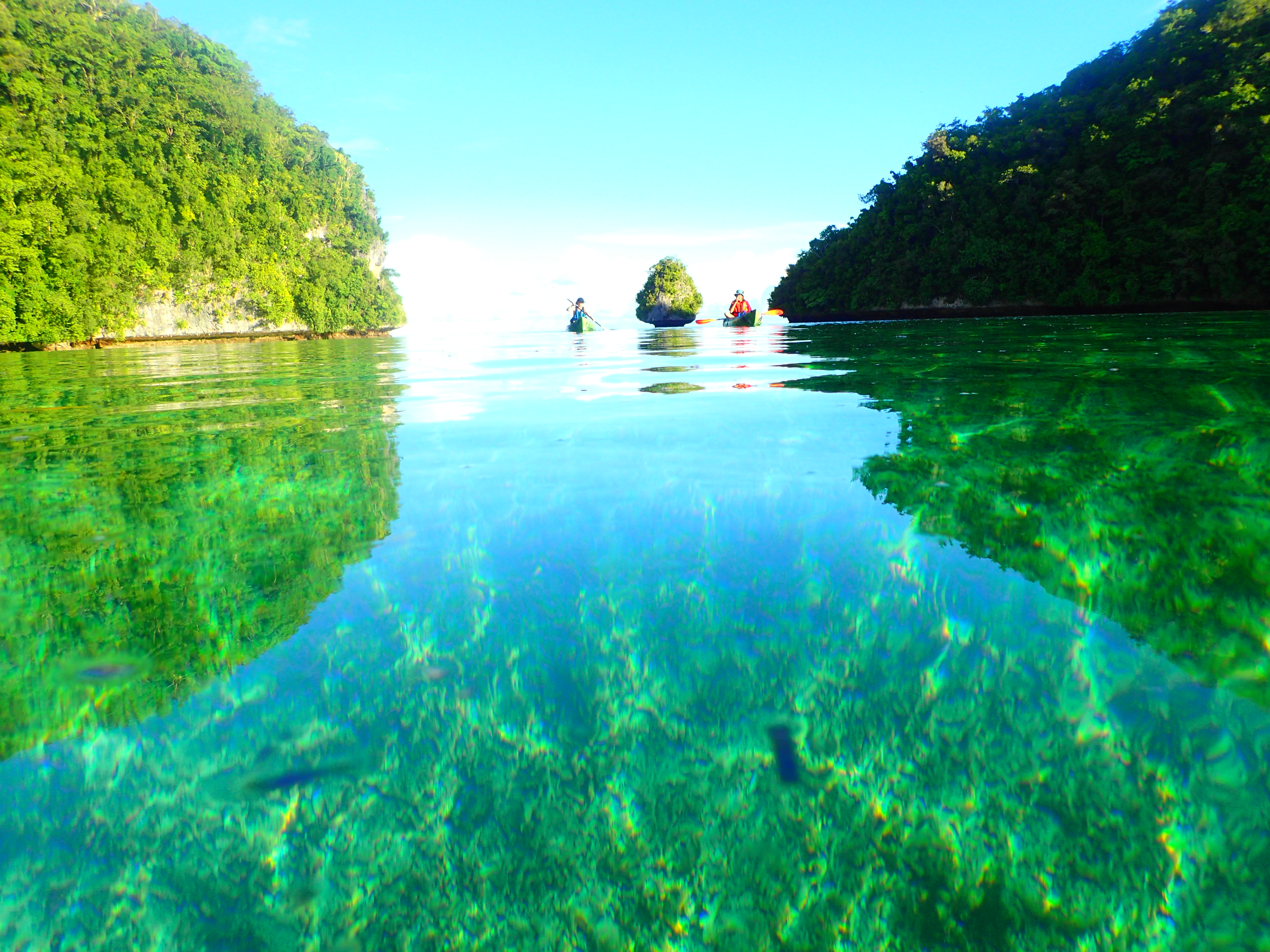パラオの海はどこも透明度が良く、カヤック上から珊瑚礁や魚が綺麗に見えます。